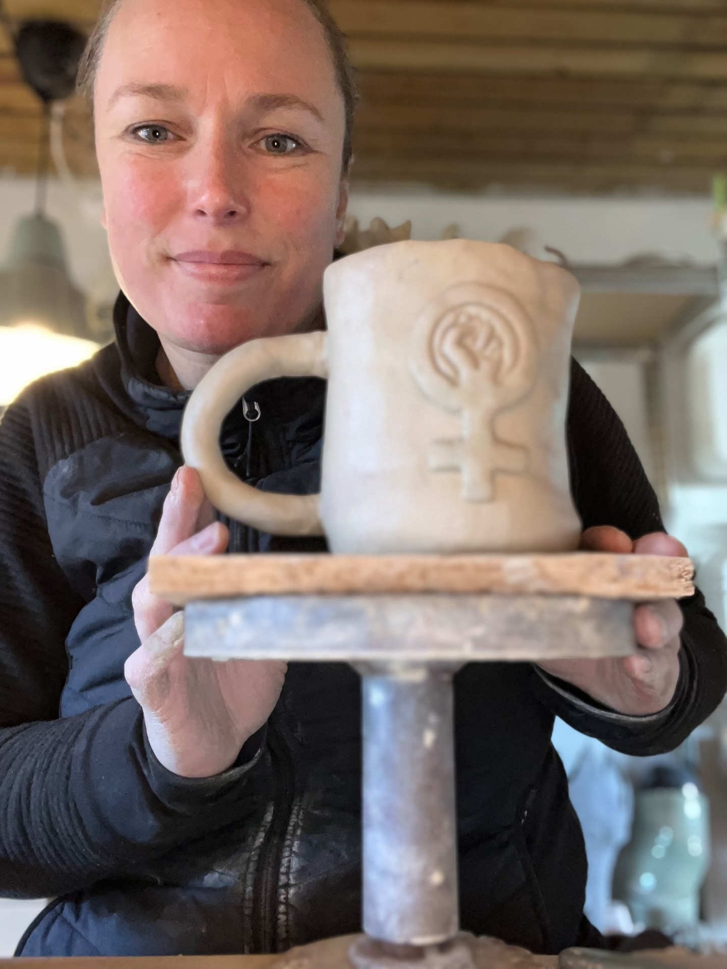 Igennem keramik finder jeg sindsro. Her giver jeg plads til, at alting kan ske. Måske er det en dame der griner, der bliver formet og får smilet frem. Eller en vase der gør krav på at blive skæv, eller et fad der får elegante og bløde former der finder vej igennem fingrene.