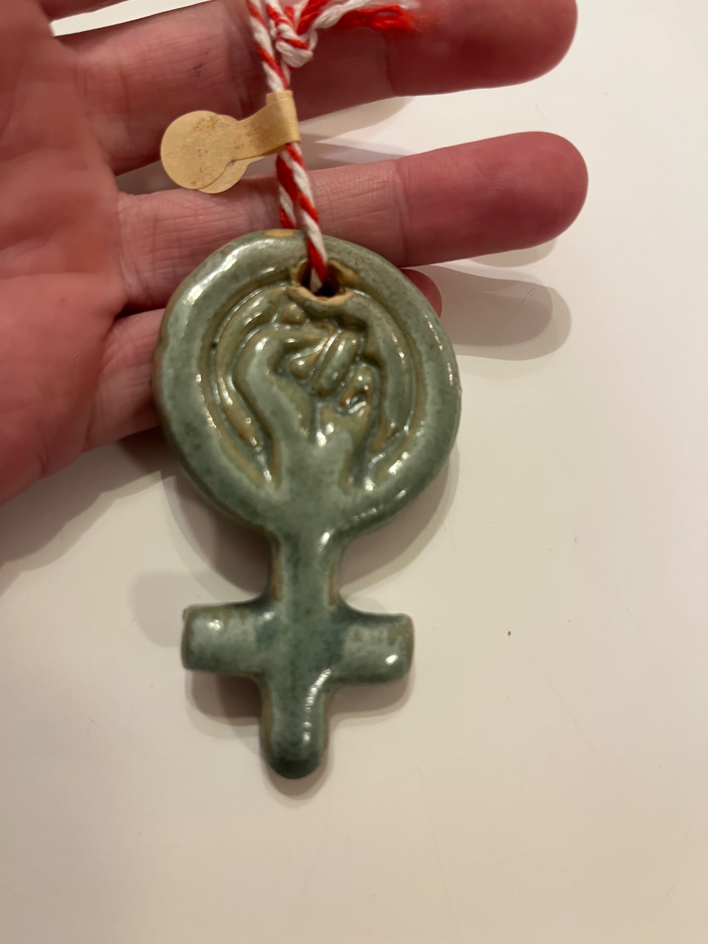 Kvindetegns ophæng. Perfekt til enhver kvinde. Kan hænge op hele året, men også på juletræet. Måler 7 cm i længden og 4 cm i bredden. Farve: kobbergrøn.