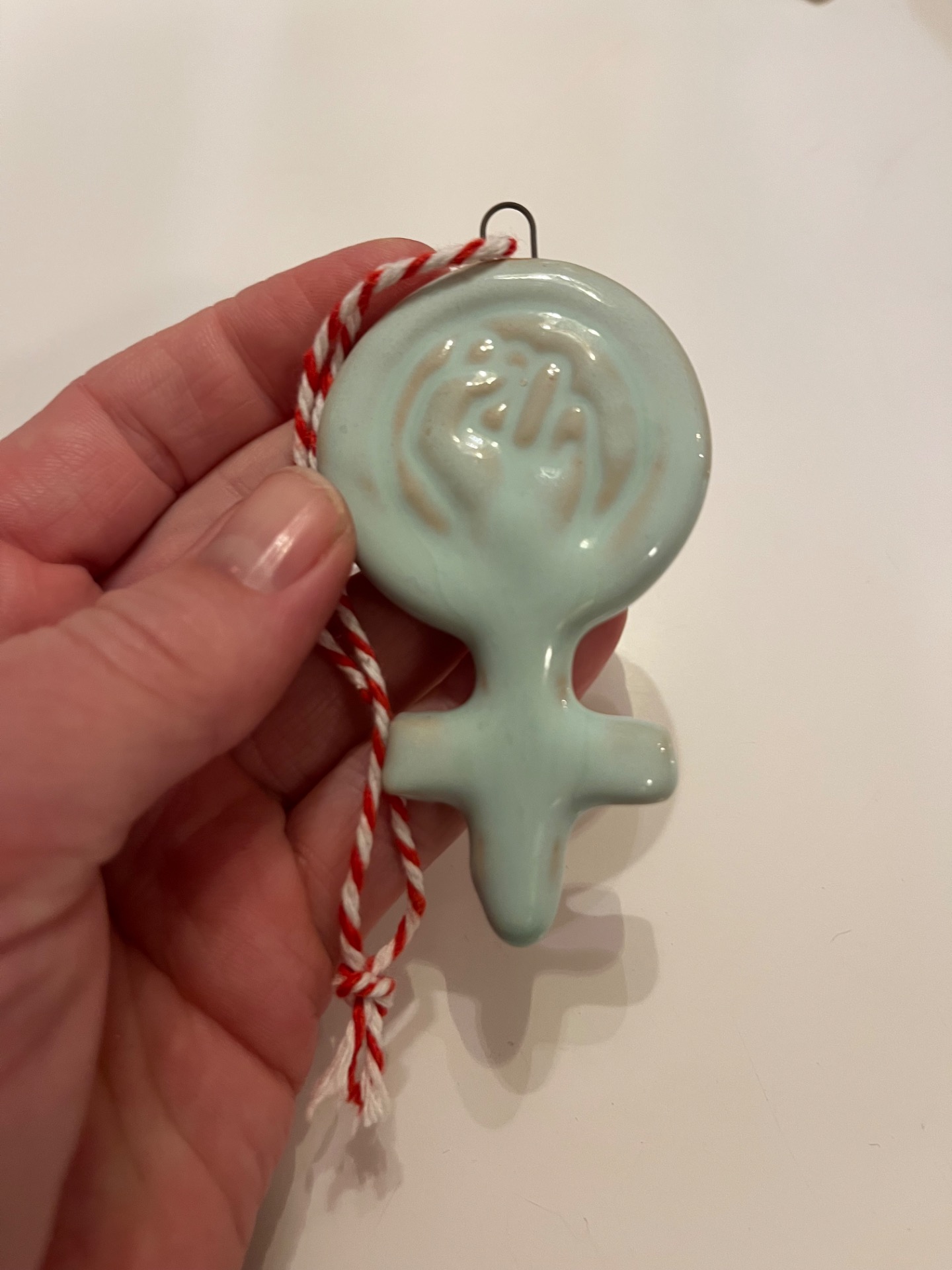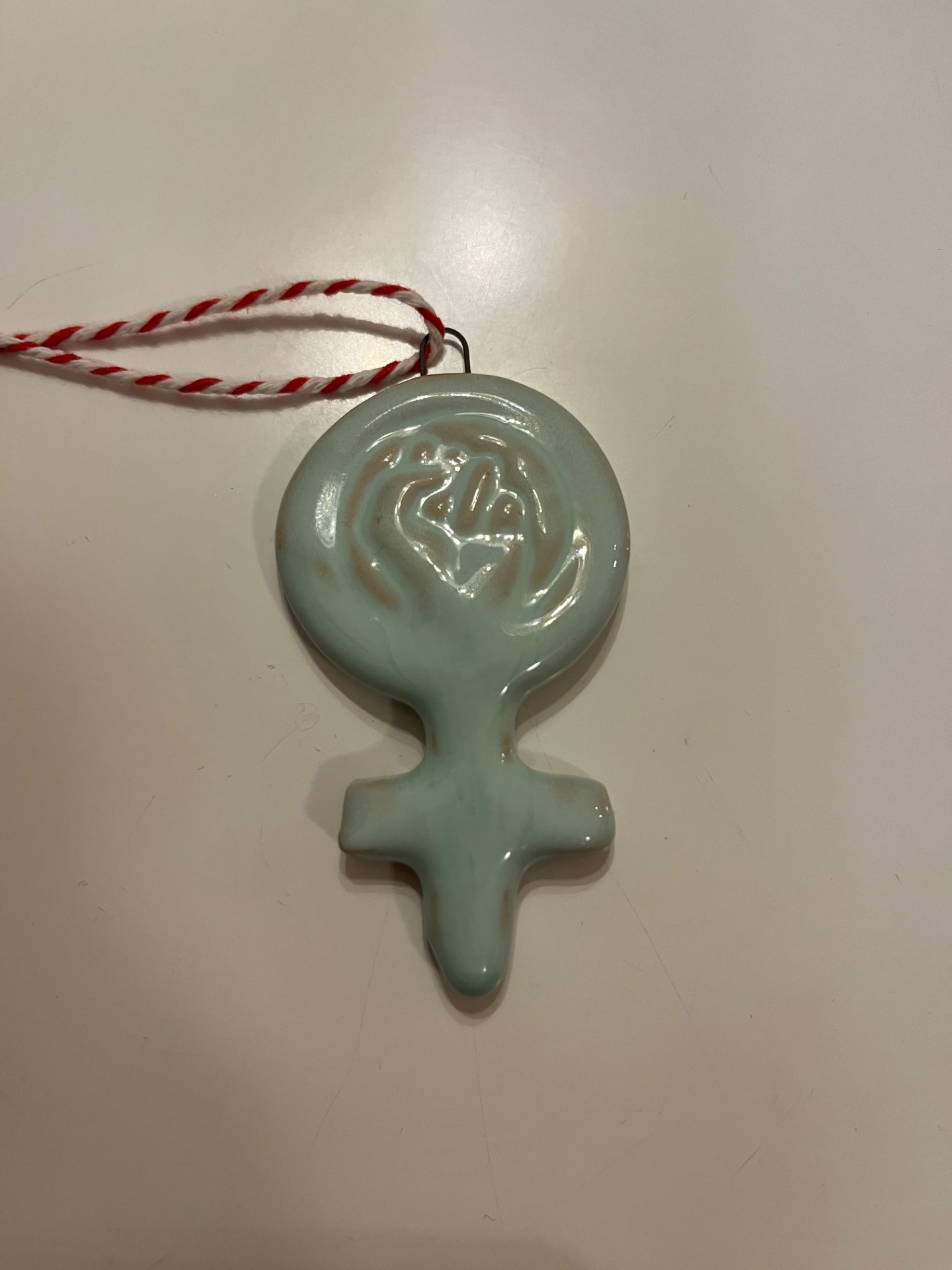 Kvindetegns ophæng. Perfekt til enhver kvinde. Kan hænge op hele året, men også på juletræet. Måler 7 cm i længden og 4 cm i bredden. Farve: mintgrøn.