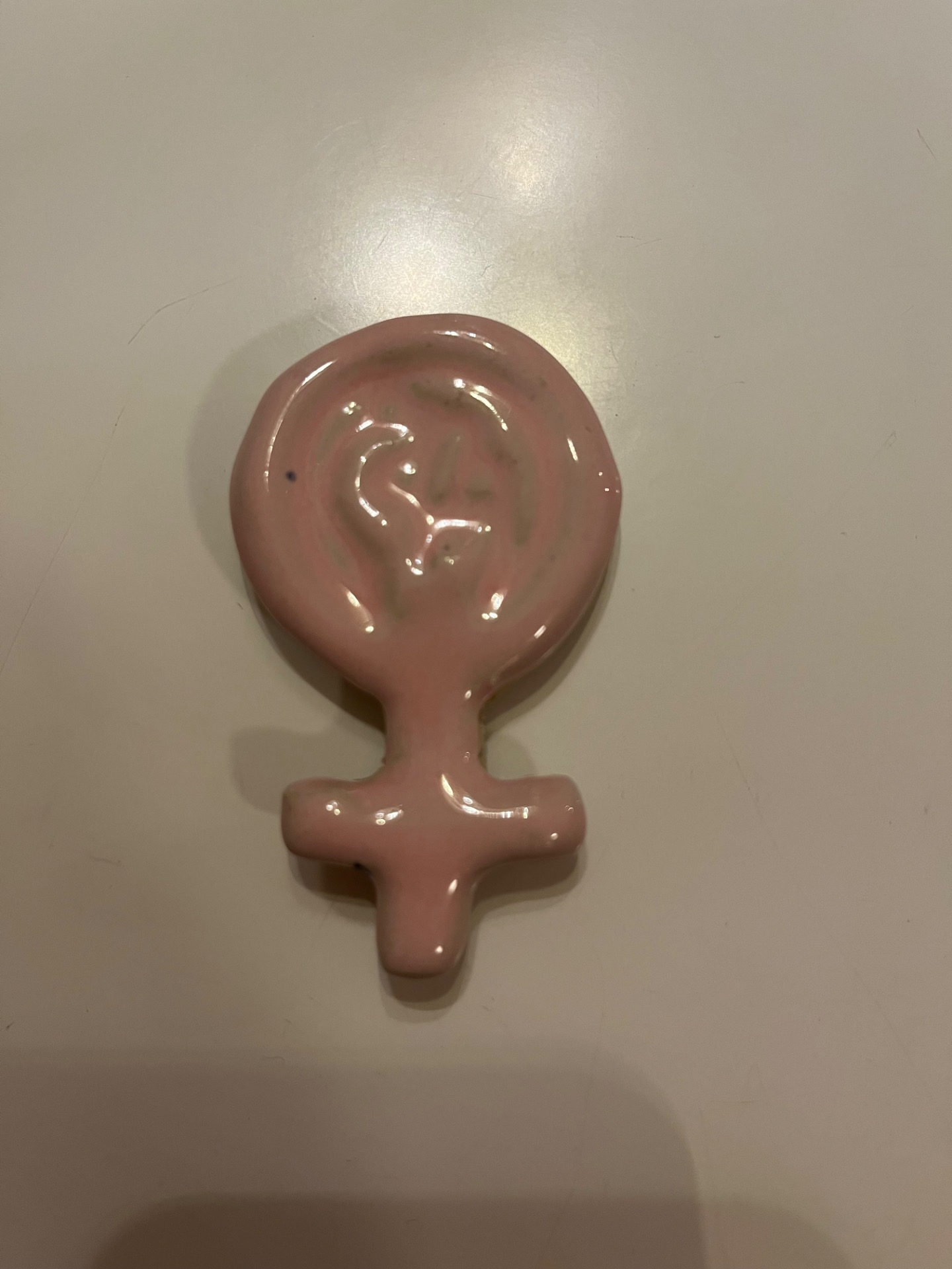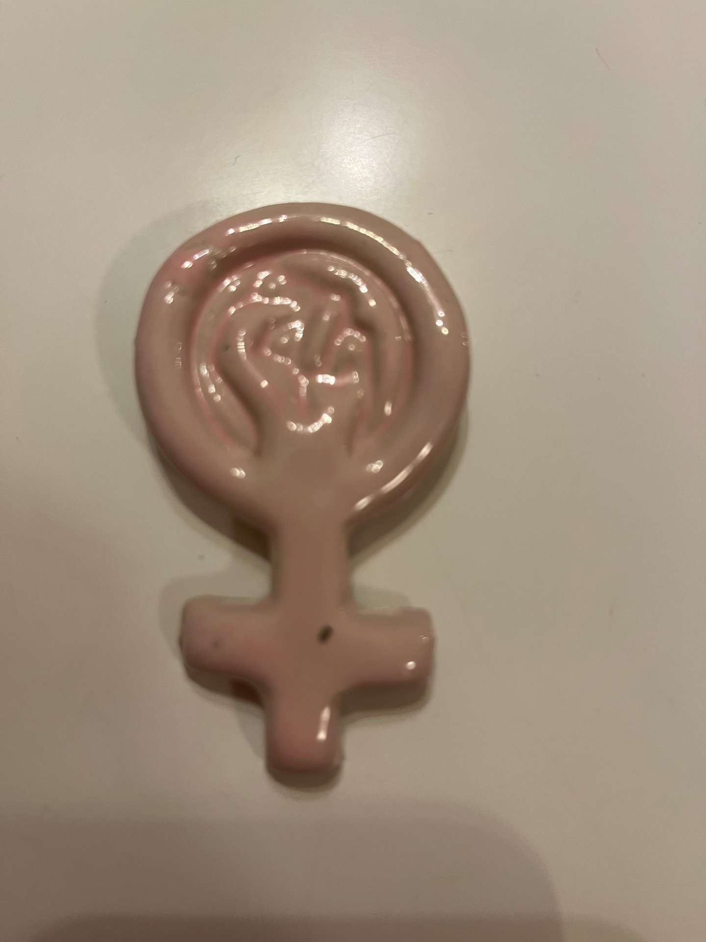 Kvindetegns magnet. Perfekt til enhver kvinde og køleskabet. Måler 7 cm i længden og 4 cm i bredden. Farve: lyserød.