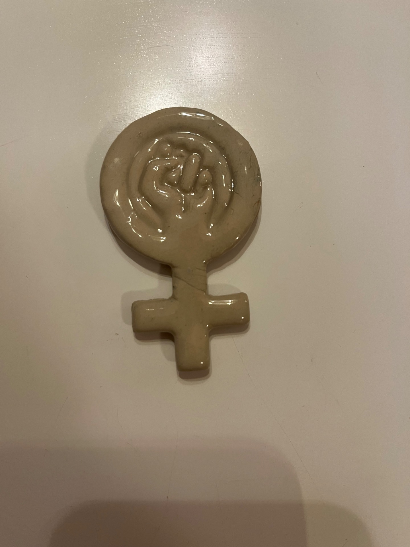 Kvindetegns magnet. Perfekt til enhver kvinde og køleskabet. Måler 7 cm i længden og 4 cm i bredden. Farve: beige.